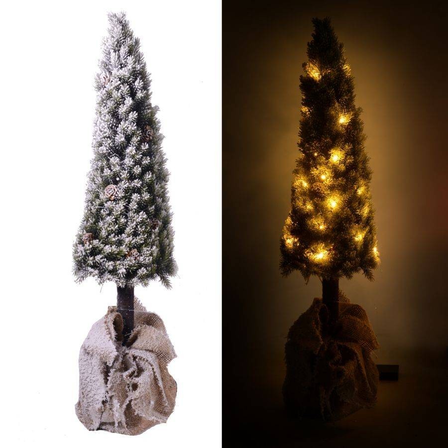 Albero con rami innevati e pigne.