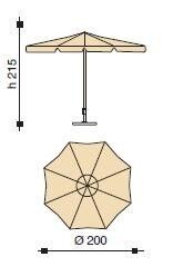 ALUX, Poliestere PolyMa, protezione UV 50+, impermeabile, bastone alluminio mm 33/37 bacchette ad uncino zincate, snodo metallo.