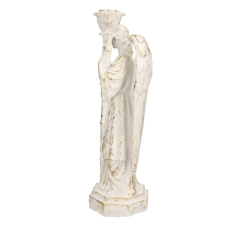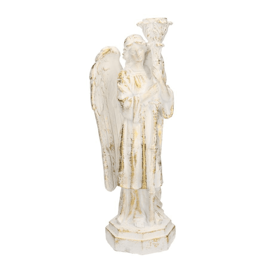 Angelo resina bianco oro con lanterna cm 15x11h40