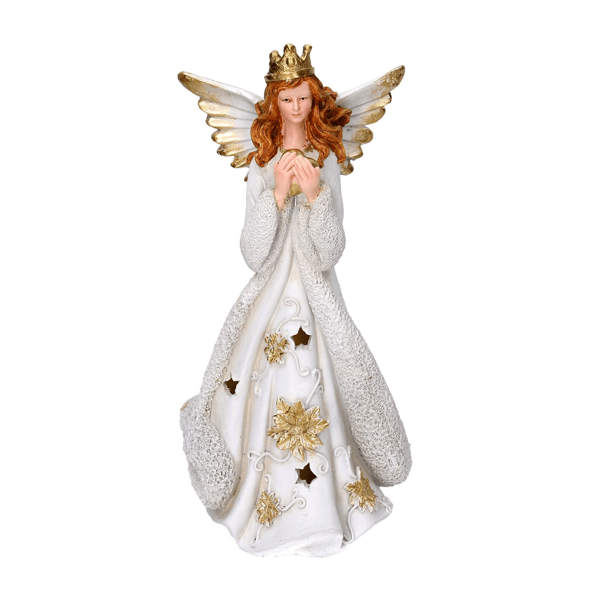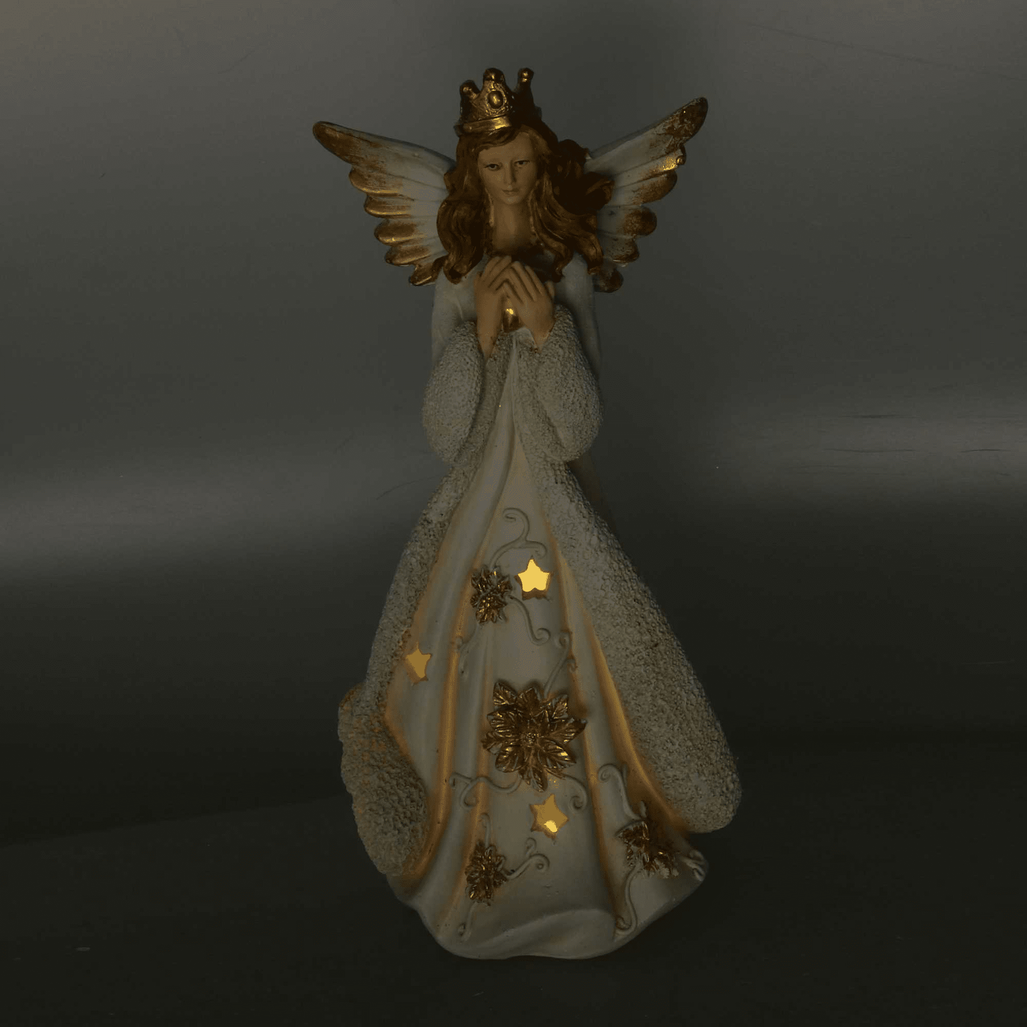Angelo resina oro con led cm 14,5×14,5h31