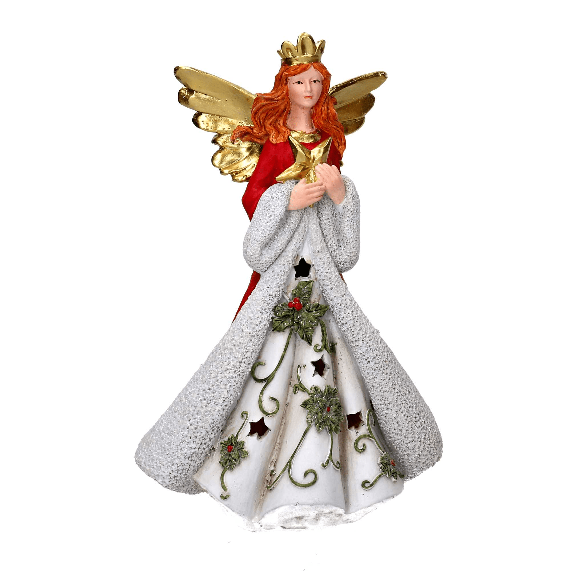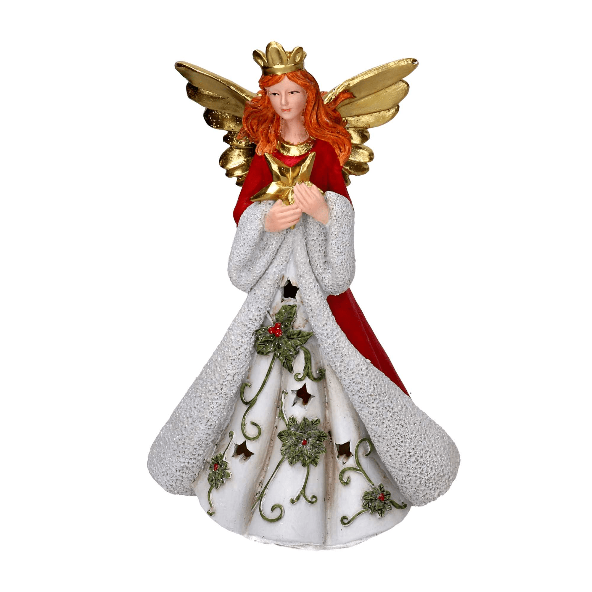 Angelo resina rosso e oro con led cm 18,5x15h29,5