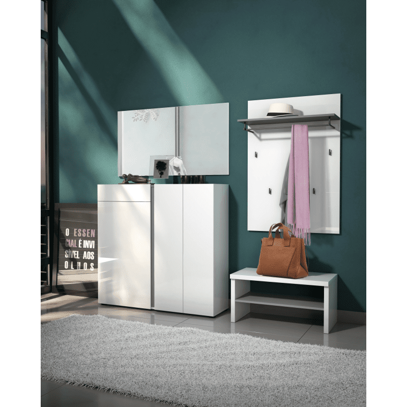 Per un ingresso elegante e funzionale, il pannello appendiabiti Atrium è la scelta ideale. Con una raffinata finitura in bianco lucido, offre 5 ganci in metallo robusti per appendere cappotti e un pratico ripiano superiore per riporre borse, cappelli o accessori.