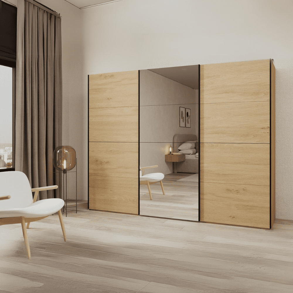 Armadio Zegna 255 3 ante scorrevoli con specchio colore rovere