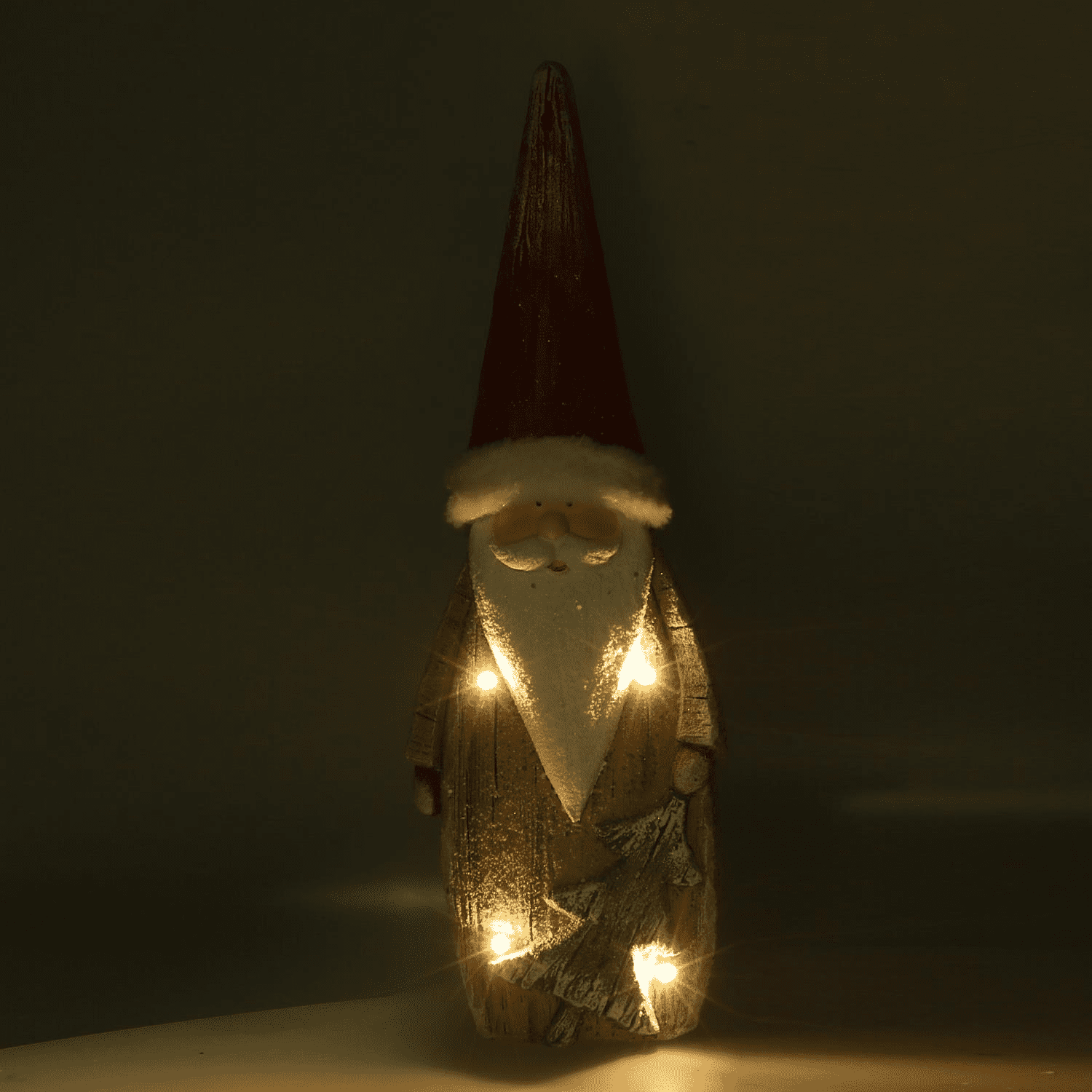 Babbo natale resina led con albero rosso cm 19x10h55,5