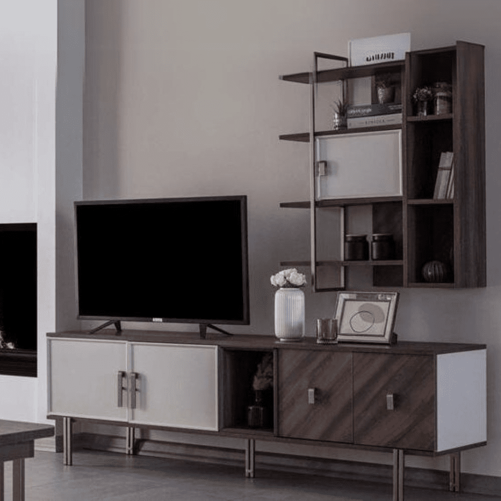 Base porta tv Merlin 4 ante battenti e 1 vano a giorno colore legno mozambik
