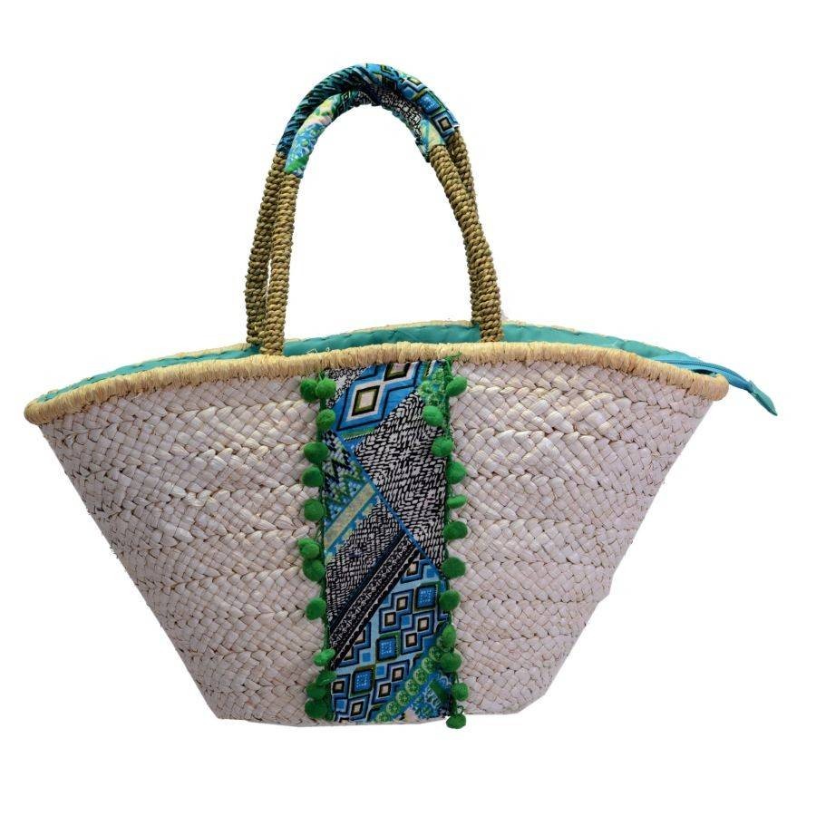Ha una struttura in paglia di colore bianco con un decoro centrale di colore verde.