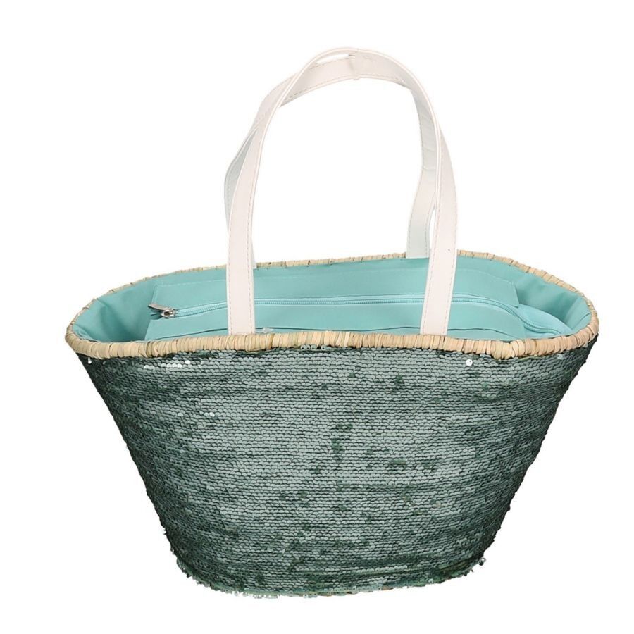 Borsa paglia con paillettes azzurro cm 47×18 e h 23cm di Vacchetti.