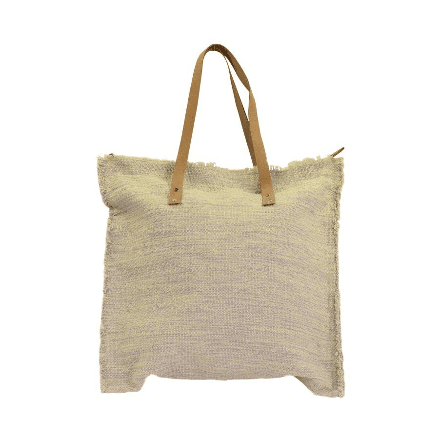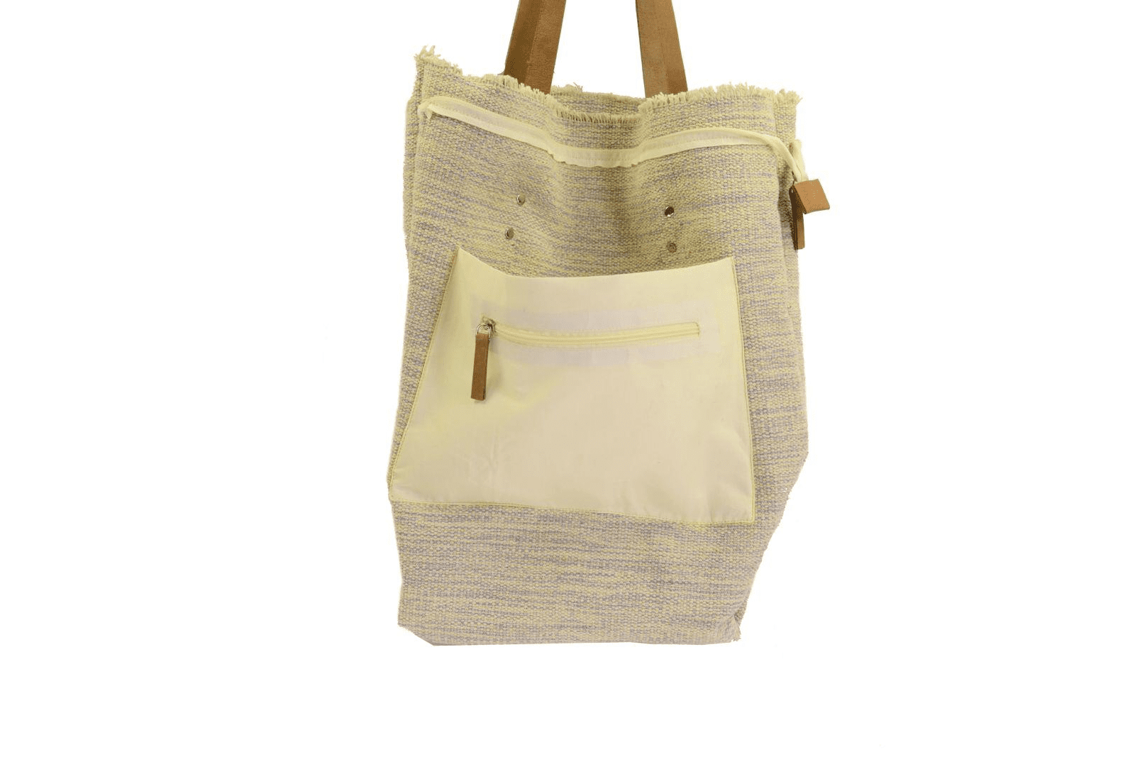 Borsa tessuto crema azzurro con manici noce cm 48h50/70×1