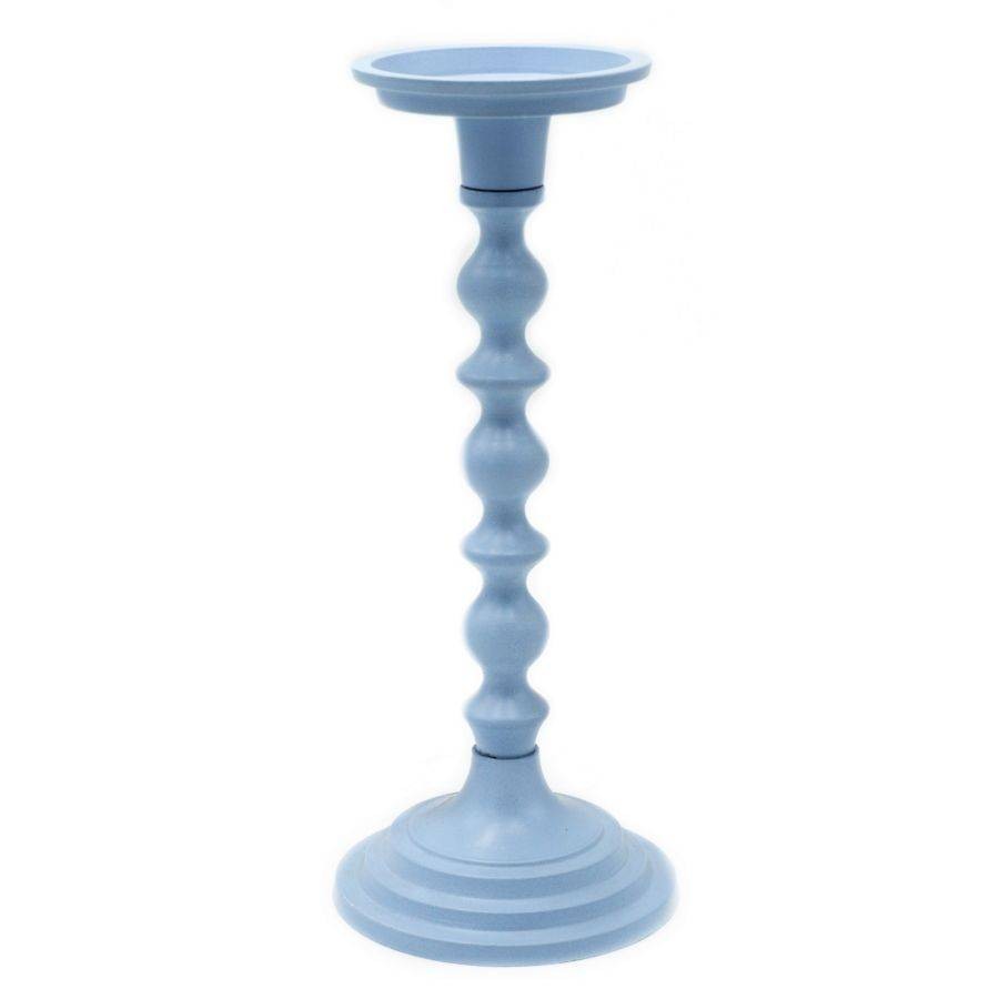 Candelabro in metallo ad 1 posto.Di colore azzurro.Disponibile in diversi colori e misure.