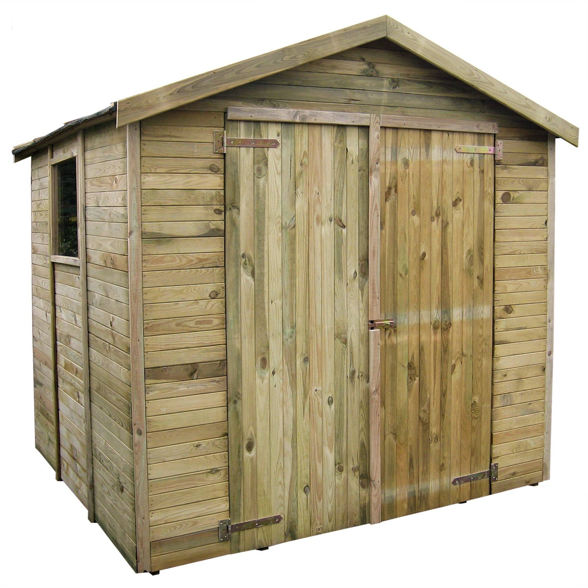 Casetta da giardino utilizzabile come ricovero per legna e/o attrezzi, in legno di pino impregnato in autoclave.