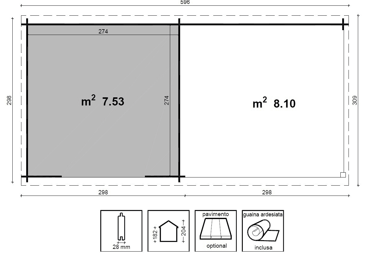 Dimensioni casetta interne cm 274×274