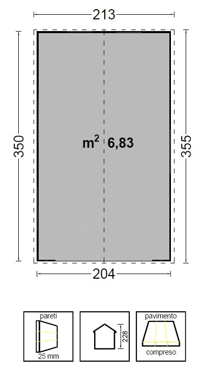 di lucernario a tutta lunghezza. Porta rinforzata con componenti acciaio; chiusura con chiavistello.