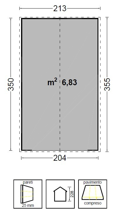Dimensioni a terra cm 204×350