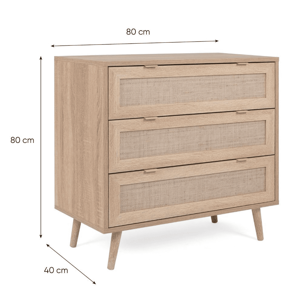 Cassettiera Bali 03A 3 cassetti effetto vimini intrecciato