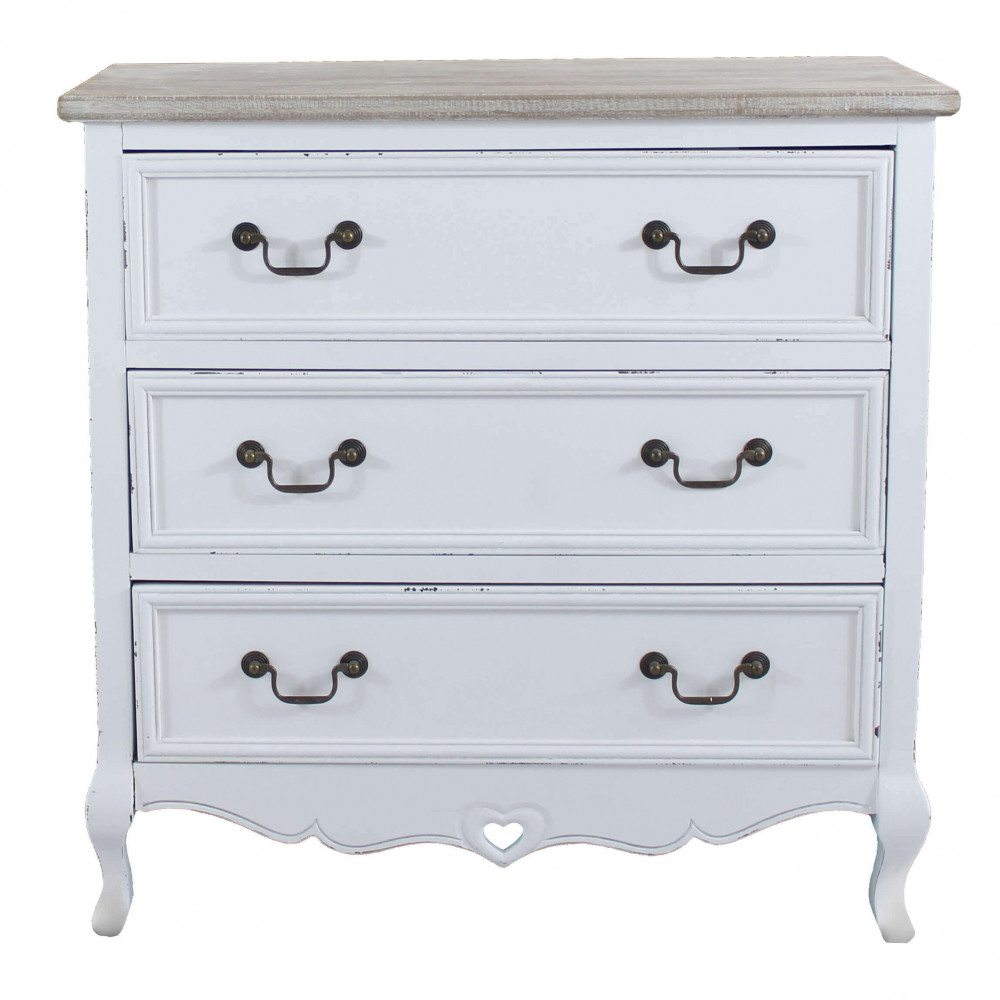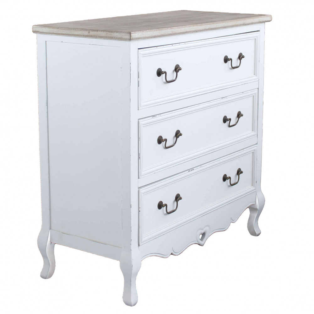Struttura in legno di paulonia colore BIANCO e top colore NOCCIOLA 3 cassetti Dimensioni: cm 80 x 38 x 80 h