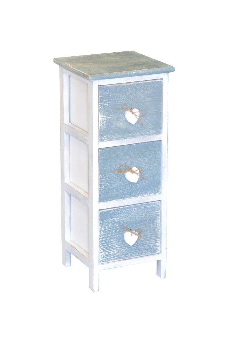 Il modello Love blu è in legno verniciato nel colore del blu e bianco con 3 cassetti dotati di maniglia a forma di cuore.