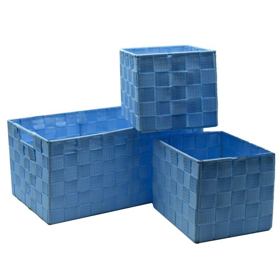 I cassetti in poliestere intrecciato sono perfetti da inserire come scomparti negli armadi, oppure come semplici portaoggetti sopra le mensole, hanno un colore azzurro vivace.