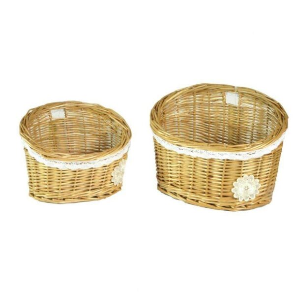 Il set è composto da due ceste pensili, in vimini , dotate di una maniglia ed un decoro nel contorno e nalla parte inferiore della cesta.