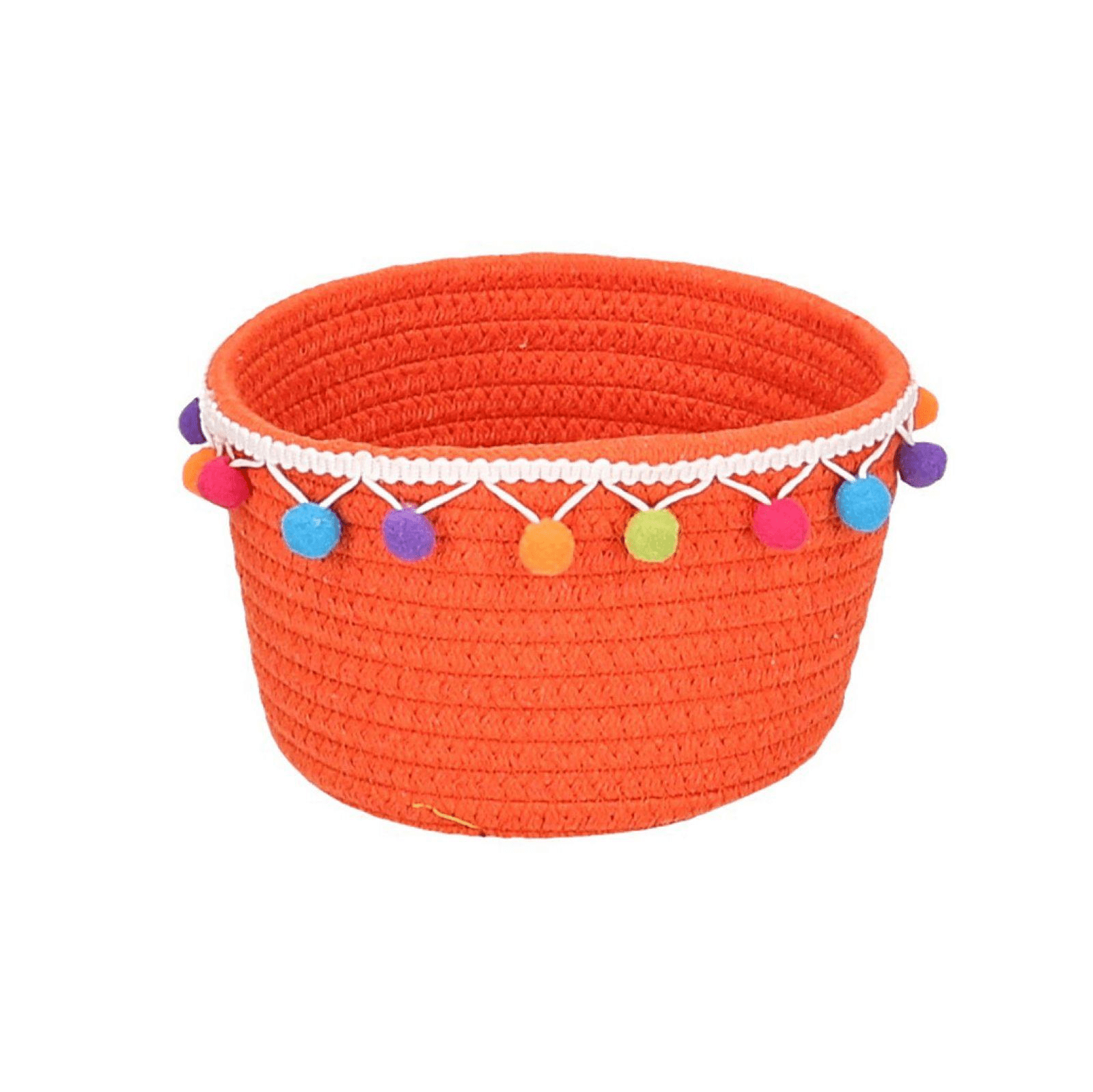 Cestina tessuto 1-3 arancione con pompon tondo cmø19h15