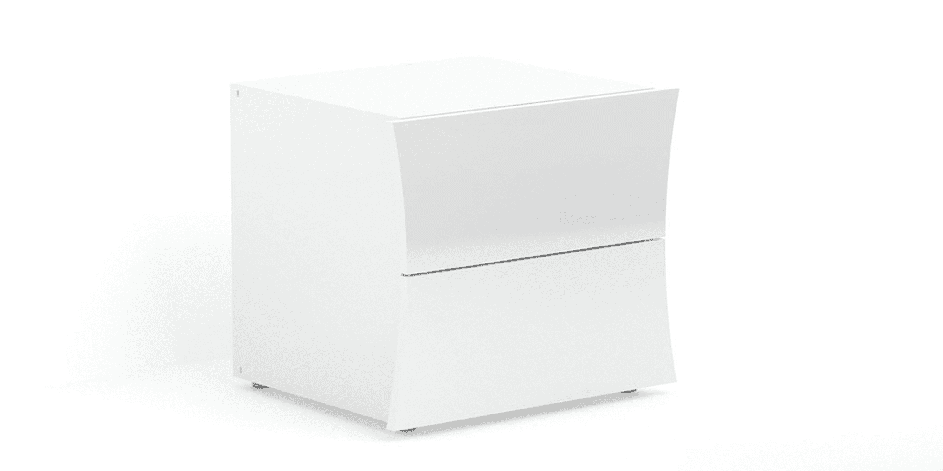 La struttura, i frontali e i cassetti sono in melaminico laccato bianco lucido.