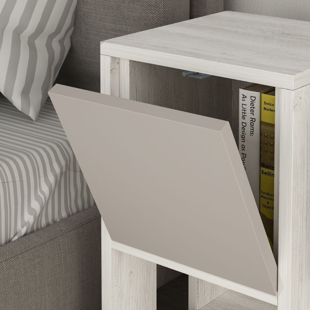 Comodino Ema anta ribalta colore bianco tortora 30x30x55h