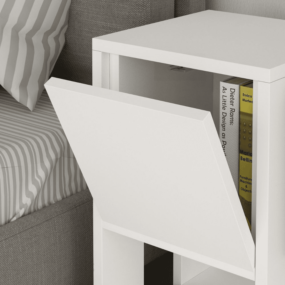 Comodino Ema bianco anta ribalta 30x30x55h