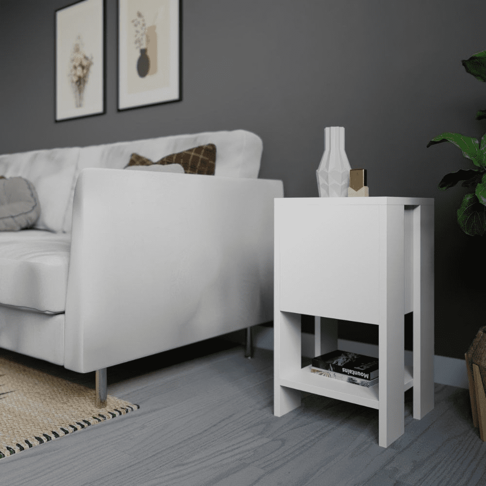 Comodino bianco anta ribalta Ema 30x30x55h