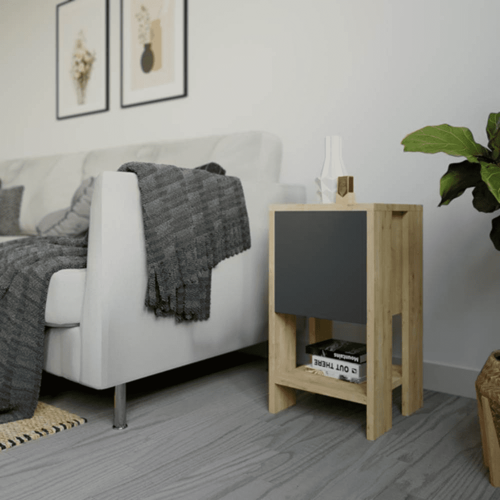 Comodino Ema rovere e antracite anta ribalta 30x30x55h