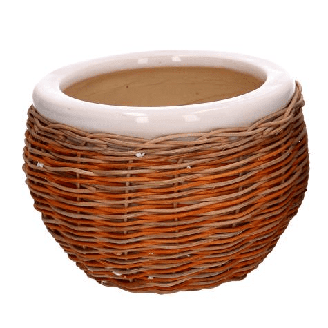 Coprivaso ceramica 1-3 bianco c/vimini cmø31h21