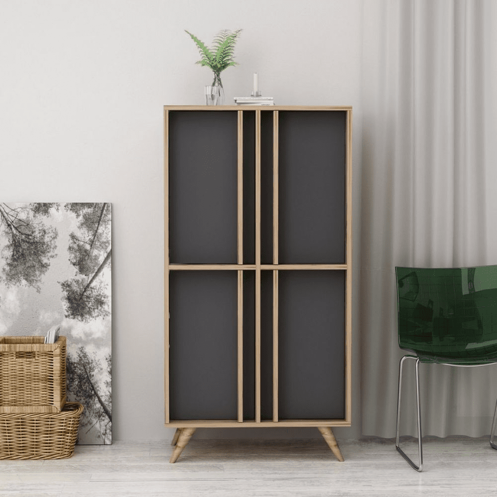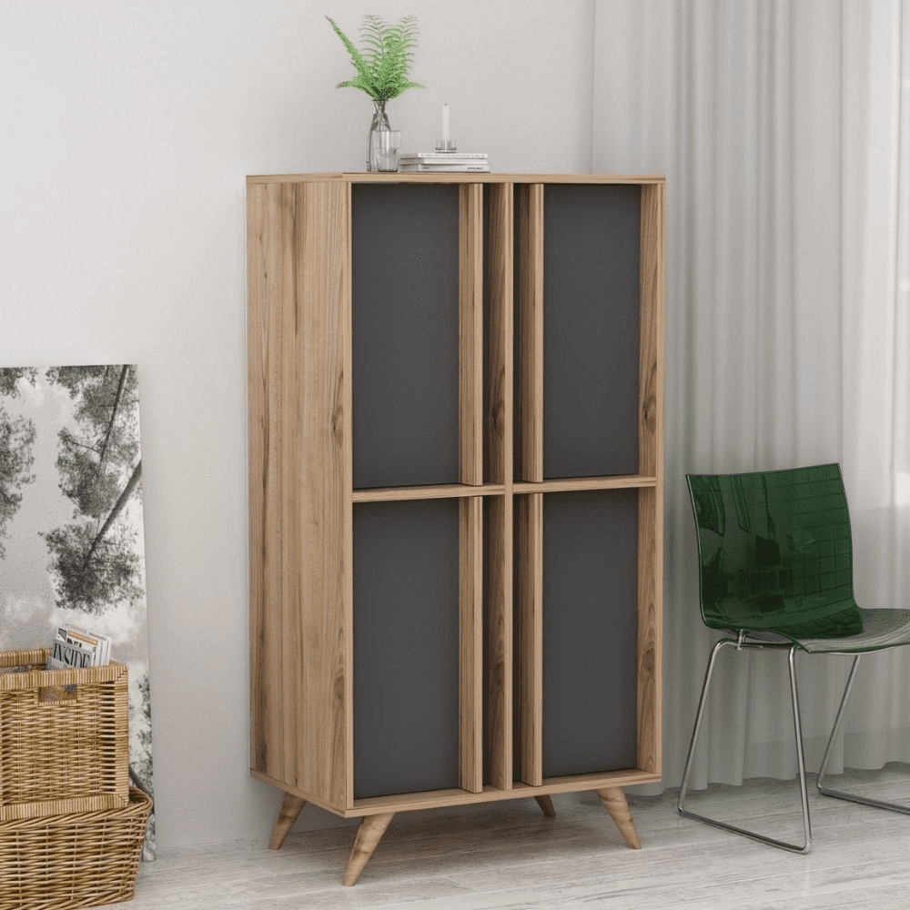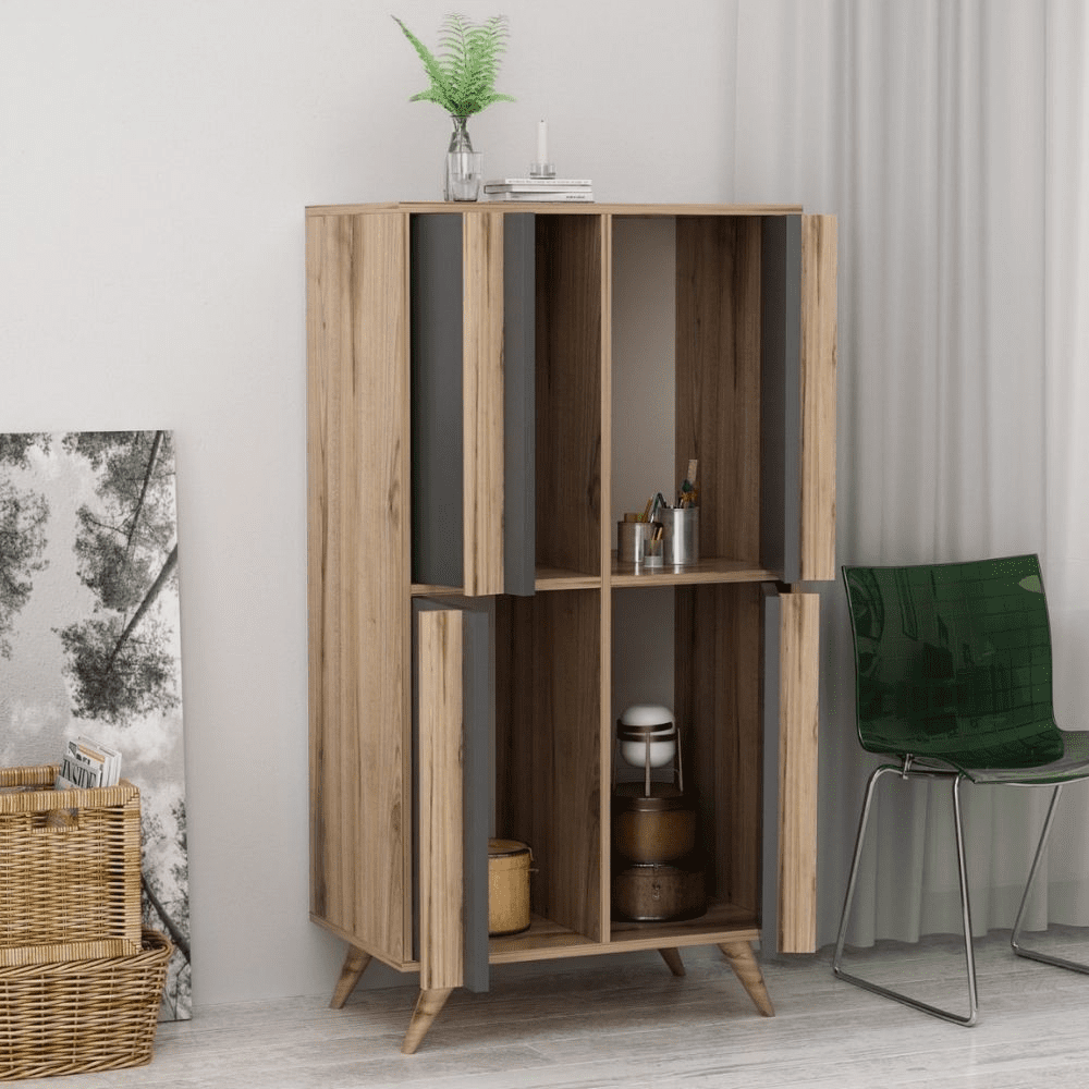 Credenza alta 4 ante antracite noce Rilla 72×139