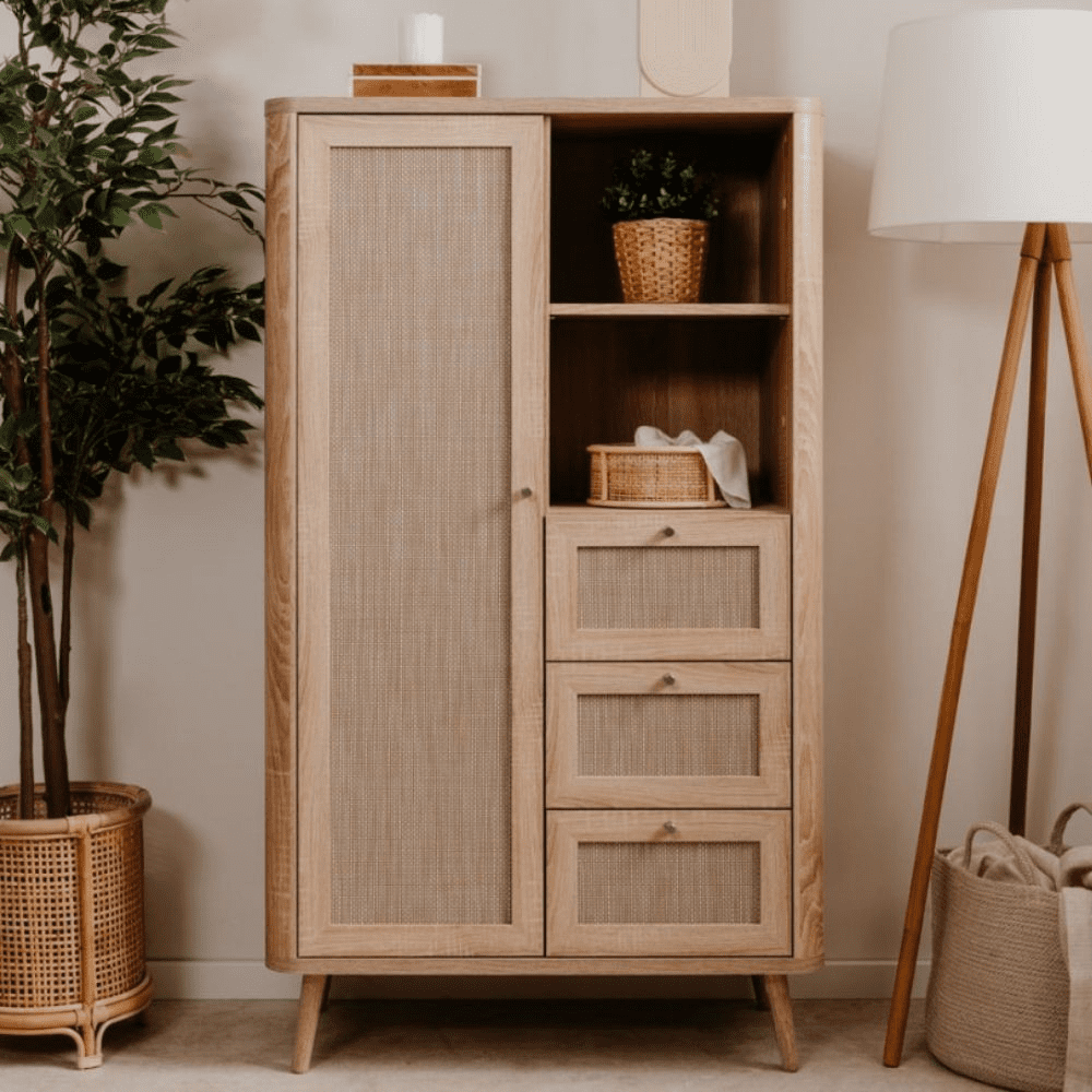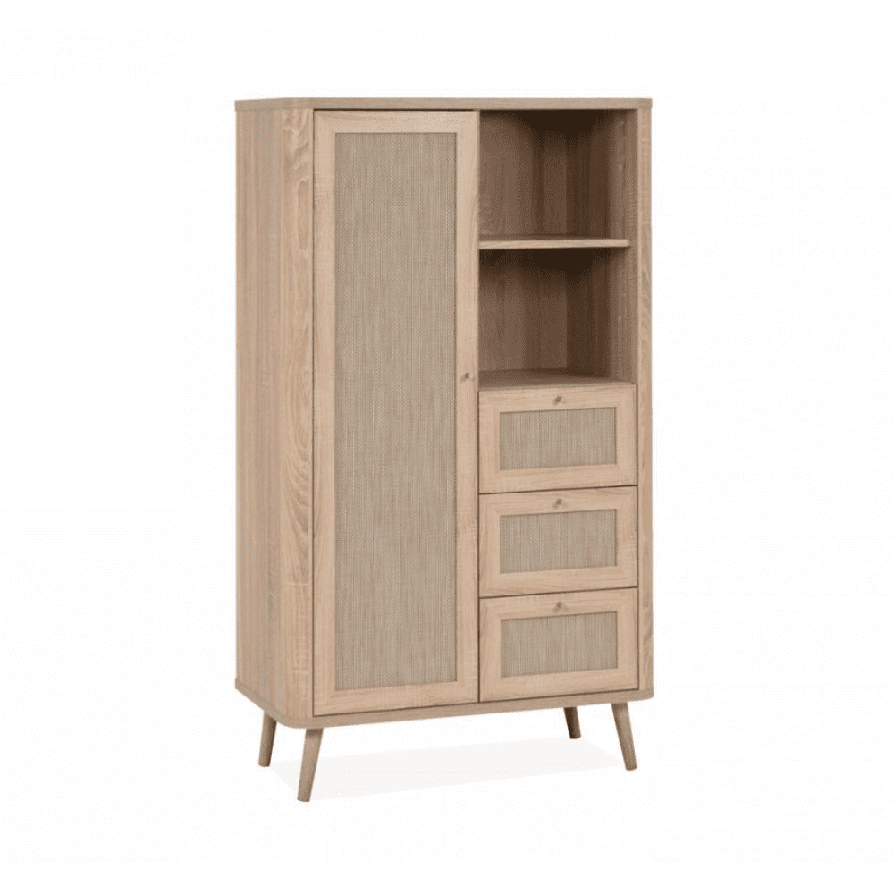 Credenza KUTA53 rovere sonoma 3 cassetti e anta effetto rafia