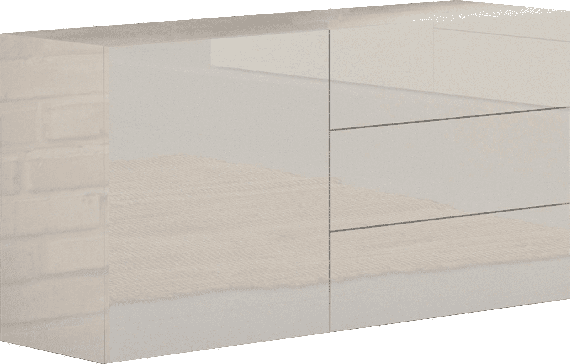 La struttura è costituita da un’anta battente con all’interno un grande ripiano in legno e da tre cassetti con apertura push to open, completamente in melaminico bianco laccato lucido.