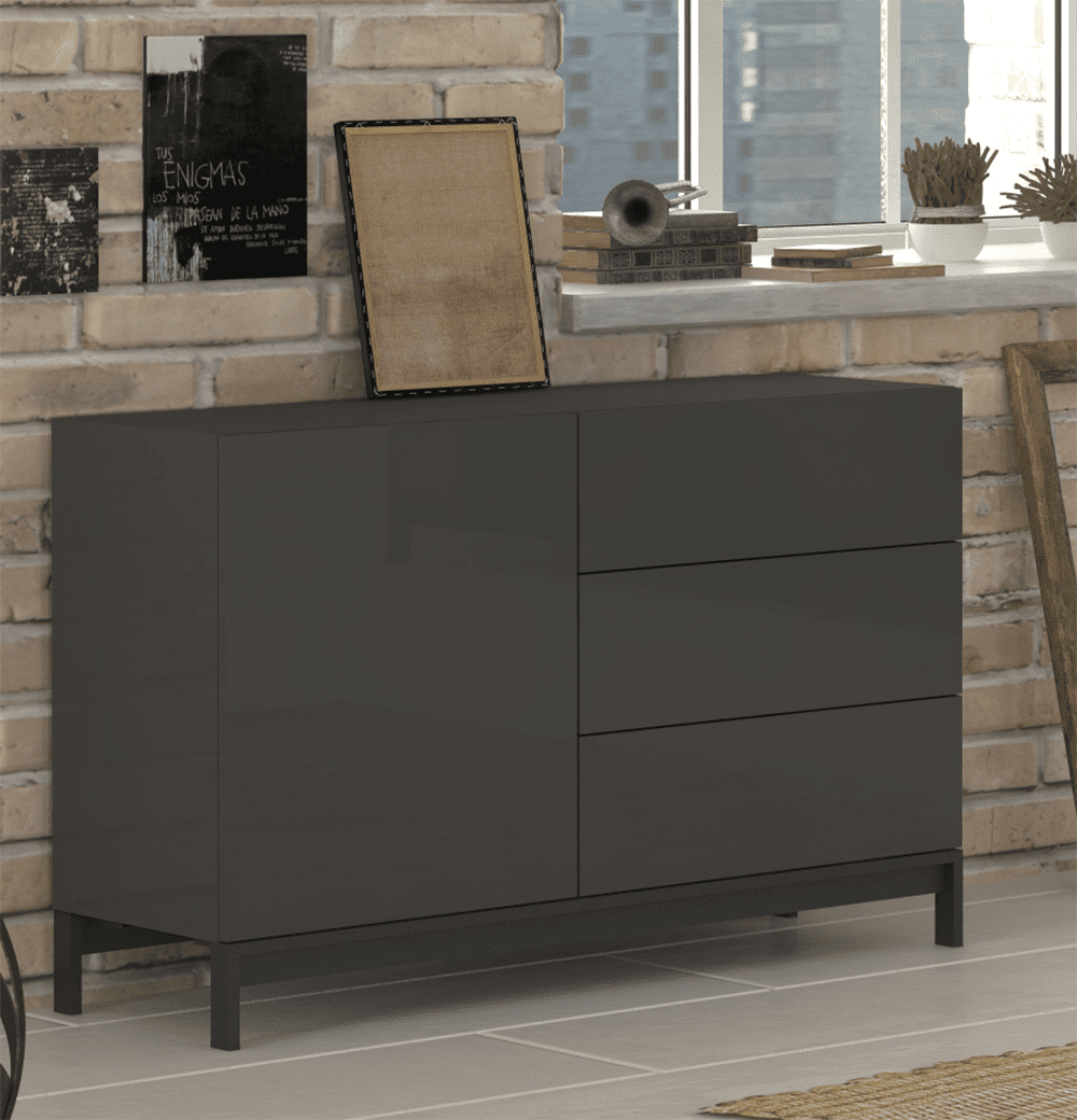 Credenza Metis 110 con piedistallo – 1 anta + 3 cassetti – Antracite Lucido