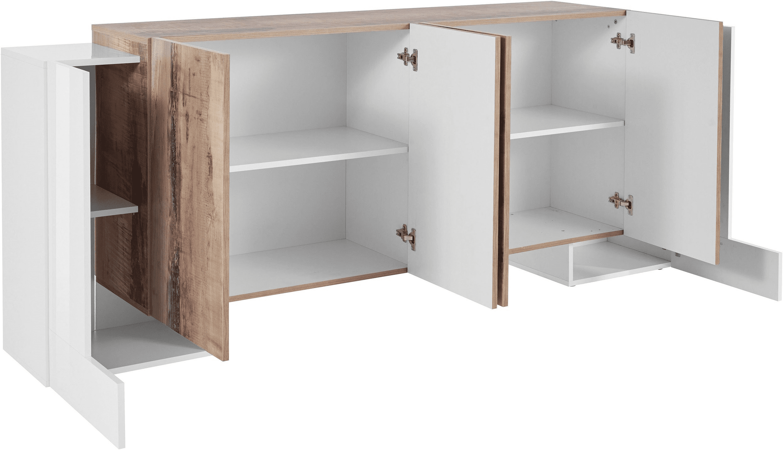 La credenza PILLON è costituita da 2 ante battenti a L con all’interno due ripiani in legno.