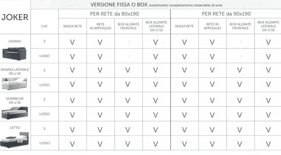 Piedini, rete, giroletto, misure o con eventuale armadio contenitore sono le modifiche principali praticabili.