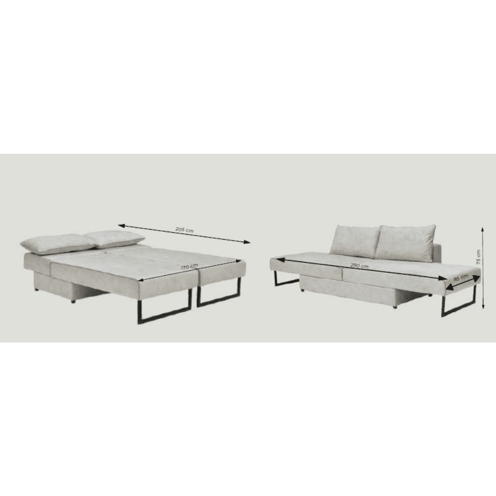H 75 x L 290 x P 85 cm.