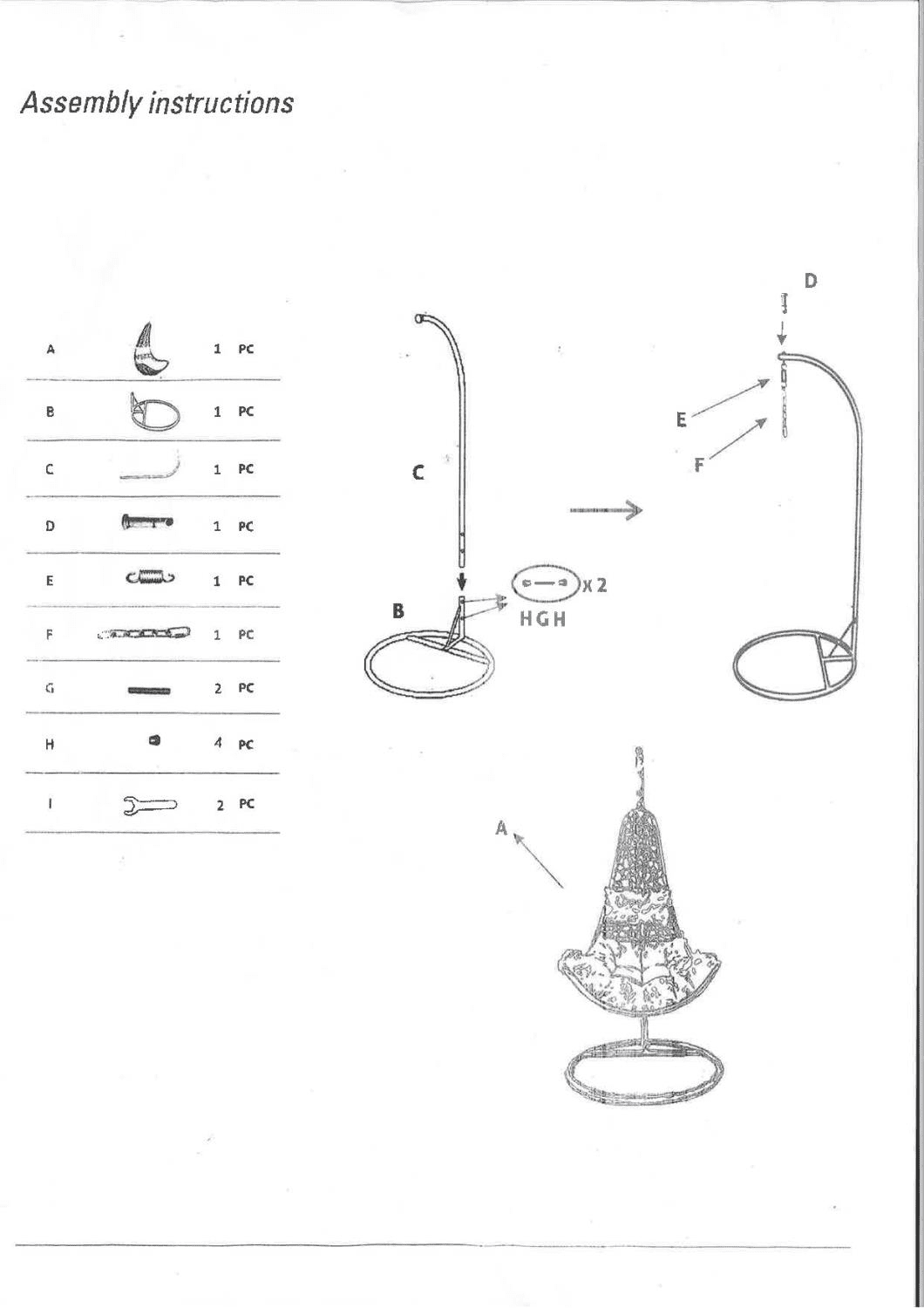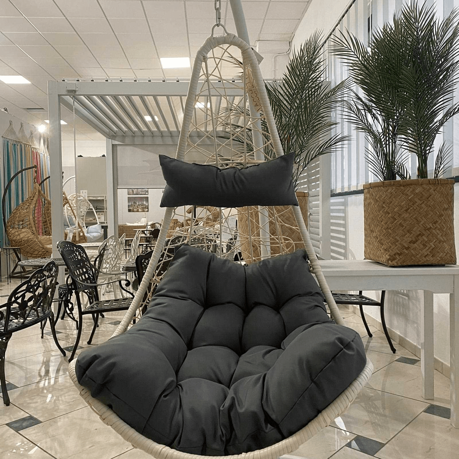 Dondolo pensile Rialto bianco con supporto e cuscino grigio cm82x65h124