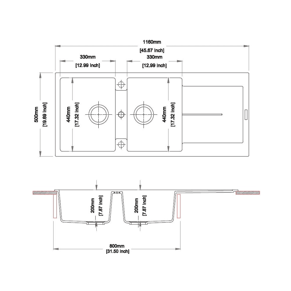 Dimensione vasca 440×330 mm.
