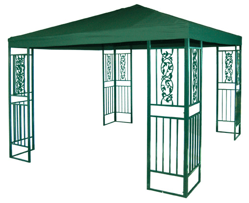 Il gazebo Uva presenta una struttura in metallo articolata e una copertura in poliestere.
