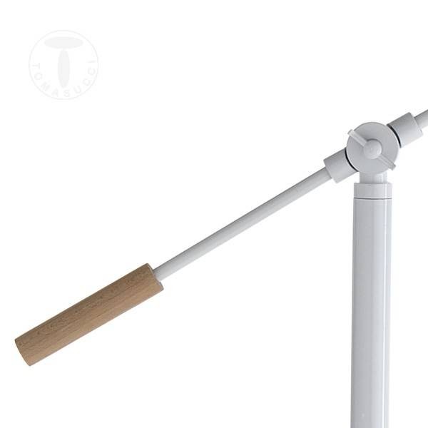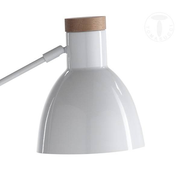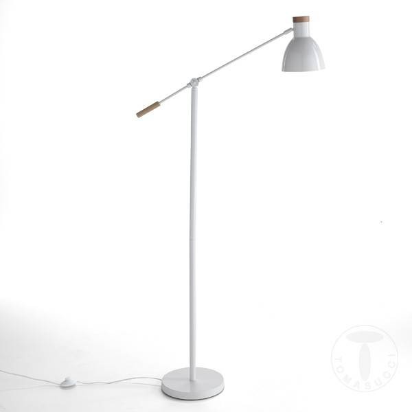 Questa lampada da terra di Tomasucci è in metallo laccato bianco, lo snodo del fusto e del paralume la rendono comoda e pratica, facile da orientare in caso di bisogno.