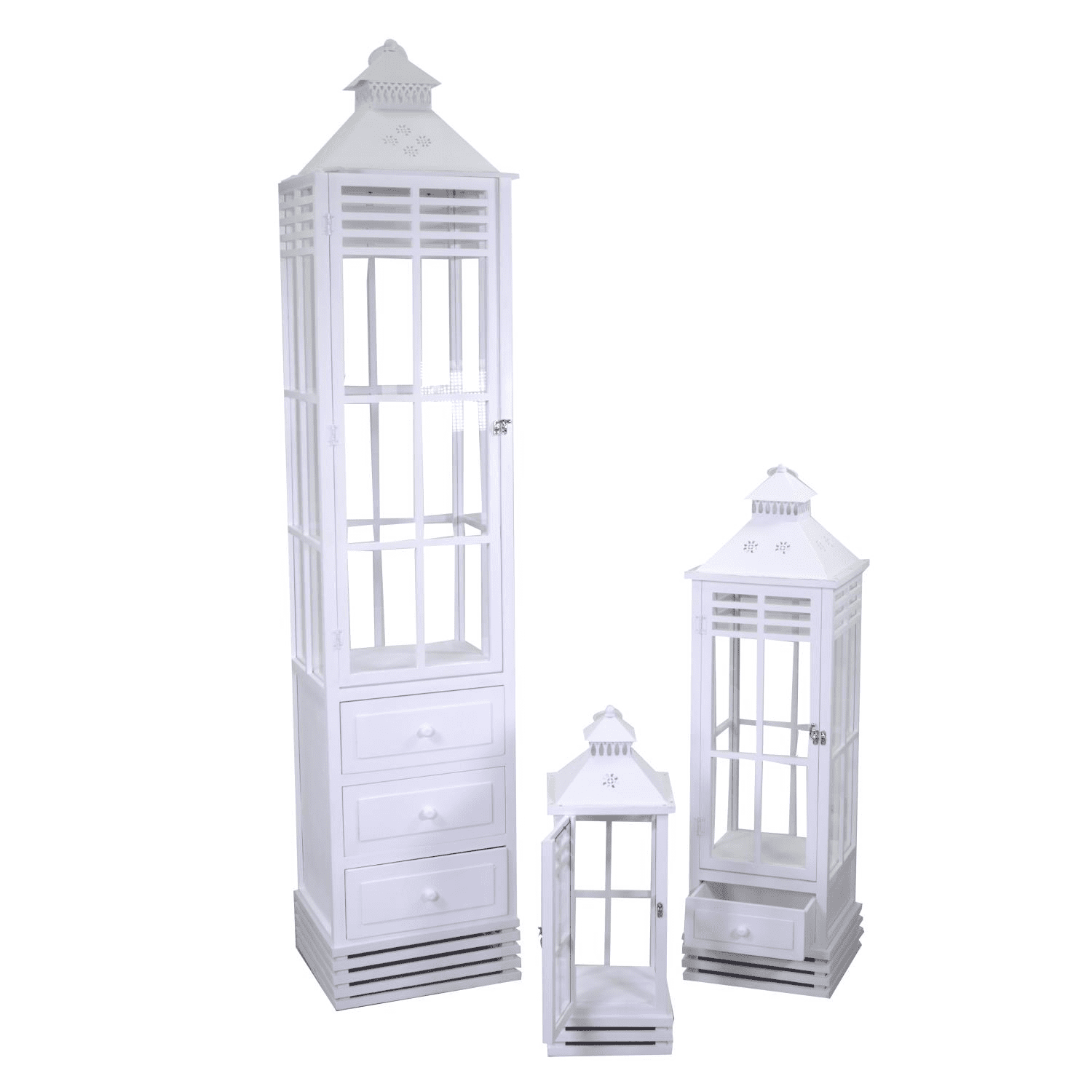 Lanterna legno 1-3 bianco rettangolare cm36,5×36,5h175