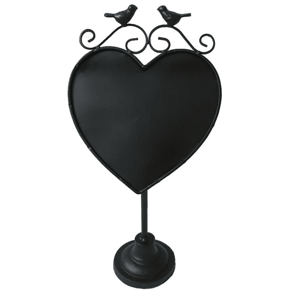 Lavagna metallo nero cuore con uccelli cm21,5×14,5h42