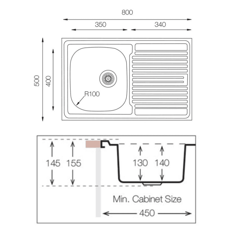 Lavello appoggio 80×50 SA216 1 vasca e gocciolatoio destro