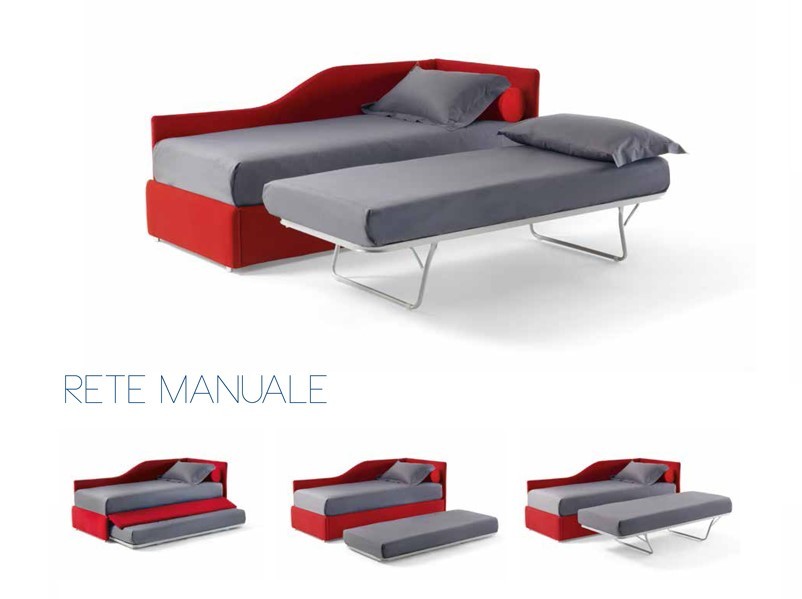 Con secondo letto estraibile e rete manuale che, una volta estratta, si monta in modo tradizionale tramite sollevamento del lato inferiore.
