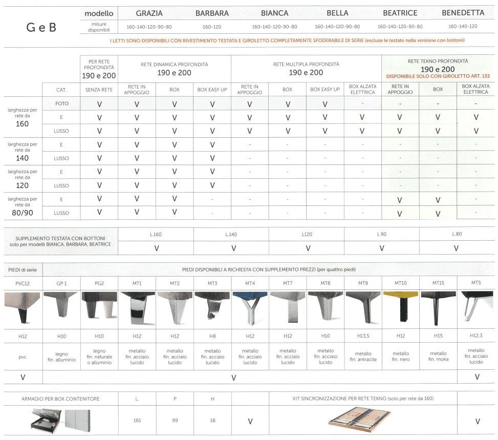 Disponibile a richiesta con supplemento prezzo su tutti i letti con box contenitore per rete da l. 160