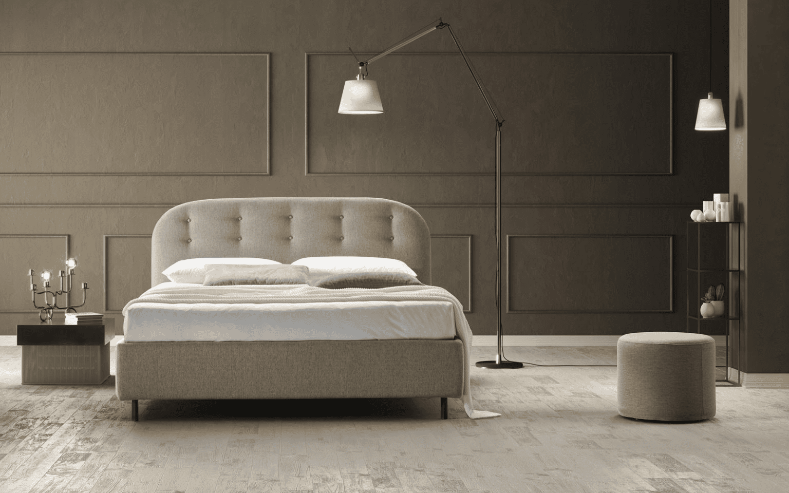 È un letto dal design semplice e funzionale che si integra perfettamente negli ambienti notte dal gusto moderno ed elegante.