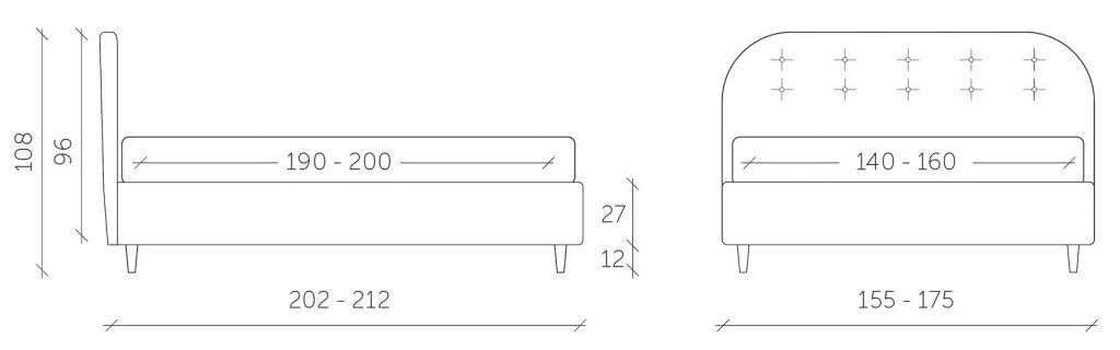È un letto dal design semplice e funzionale che si integra perfettamente negli ambienti notte dal gusto moderno ed elegante. La testata si caratterizza per le linee curve dei lati che donano uno stile elegante e raffinato.