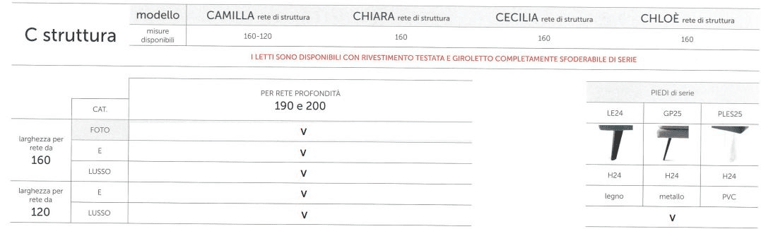 Piedini, rete, giroletto, misure o con eventuale armadio contenitore sono le modifiche principali praticabili.