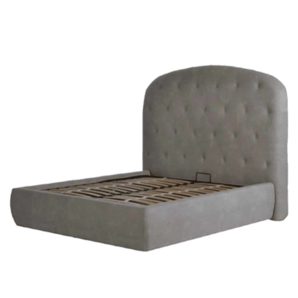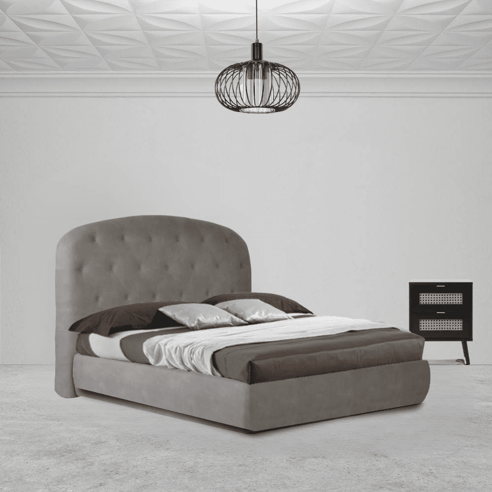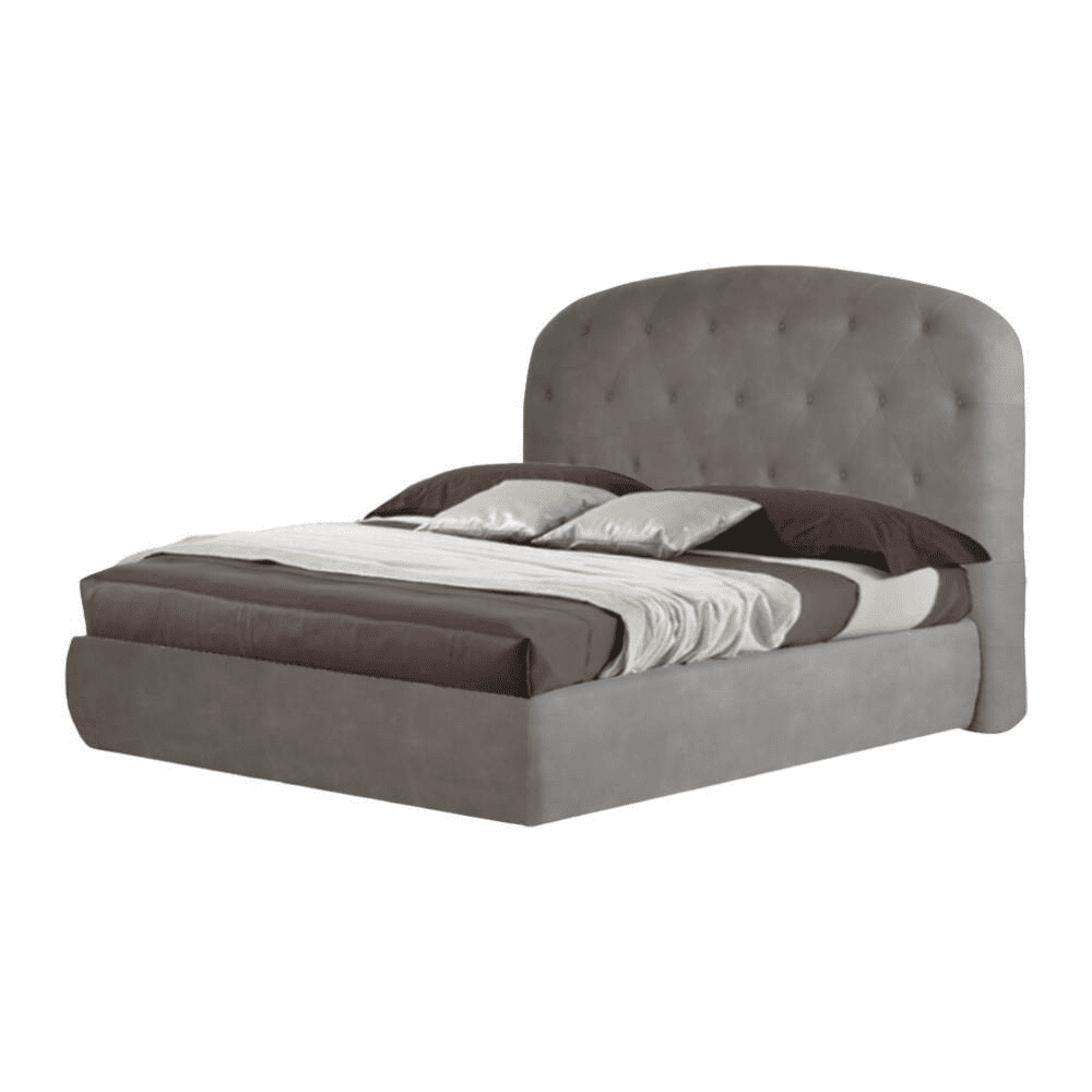Letto matrimoniale contenitore Button1 grigio chiaro testiera arrotondata