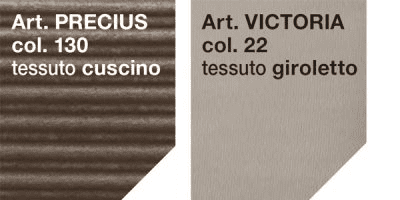 Il tessuto dei cuscini è il precius, colore n. 130 e presenta i piedini MT1.